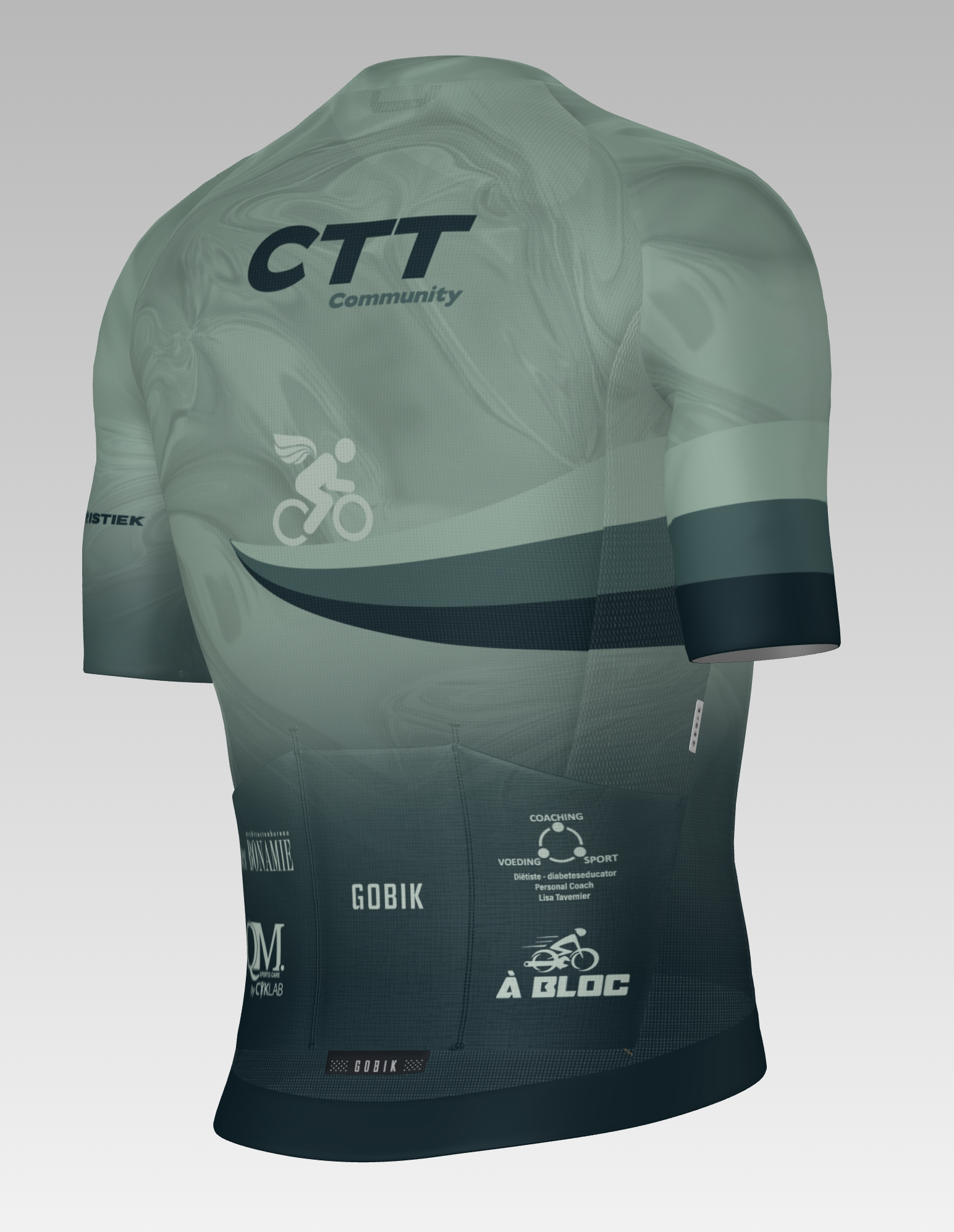 In het najaar 2021 beslisten we een fietsshirt te laten maken. Vanaf 2022 verscheen ons groene shirt in het straatbeeld. Na 3 jaar is het tijd voor een nieuw design, een betere kwaliteit en een nieuwe leverancier, Gobik. Deze Spaanse kledingfabrikant is onder meer leverancier van Team INEOS en Movistar maar ook van de FDJ-Suez dames.